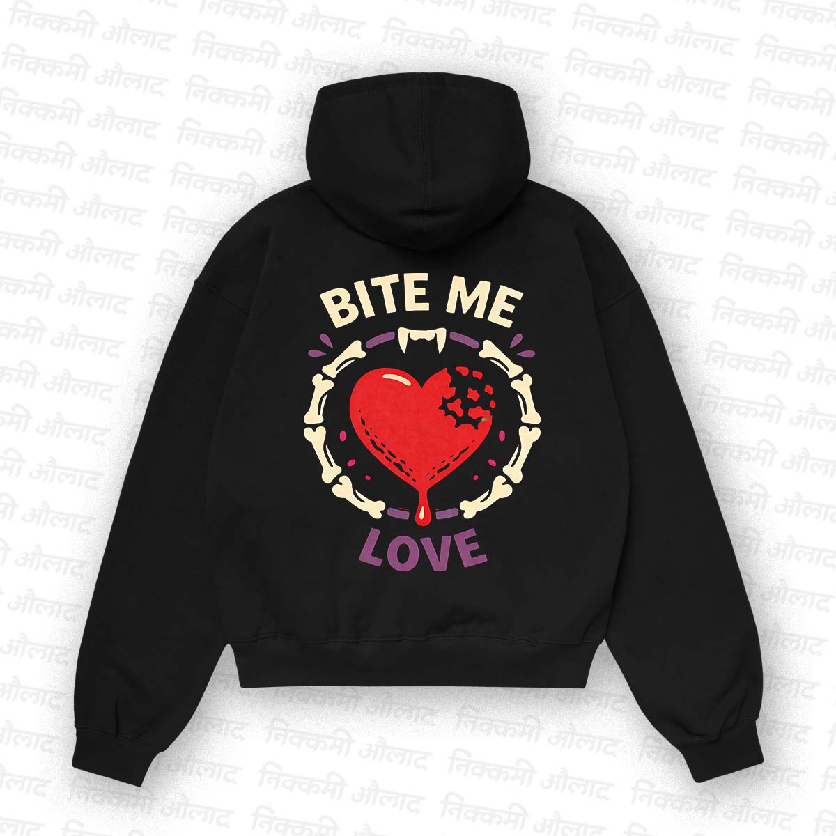 Bite Me (Toxic Love) – Anti-Valentine Graphic Hoodie | Oversized Black (Keywords: Bite Me Hoodie, Anti-Valentine Gift, Edgy Heart Graphic, Gothic Love Streetwear, Toxic Relationship Hoodie)