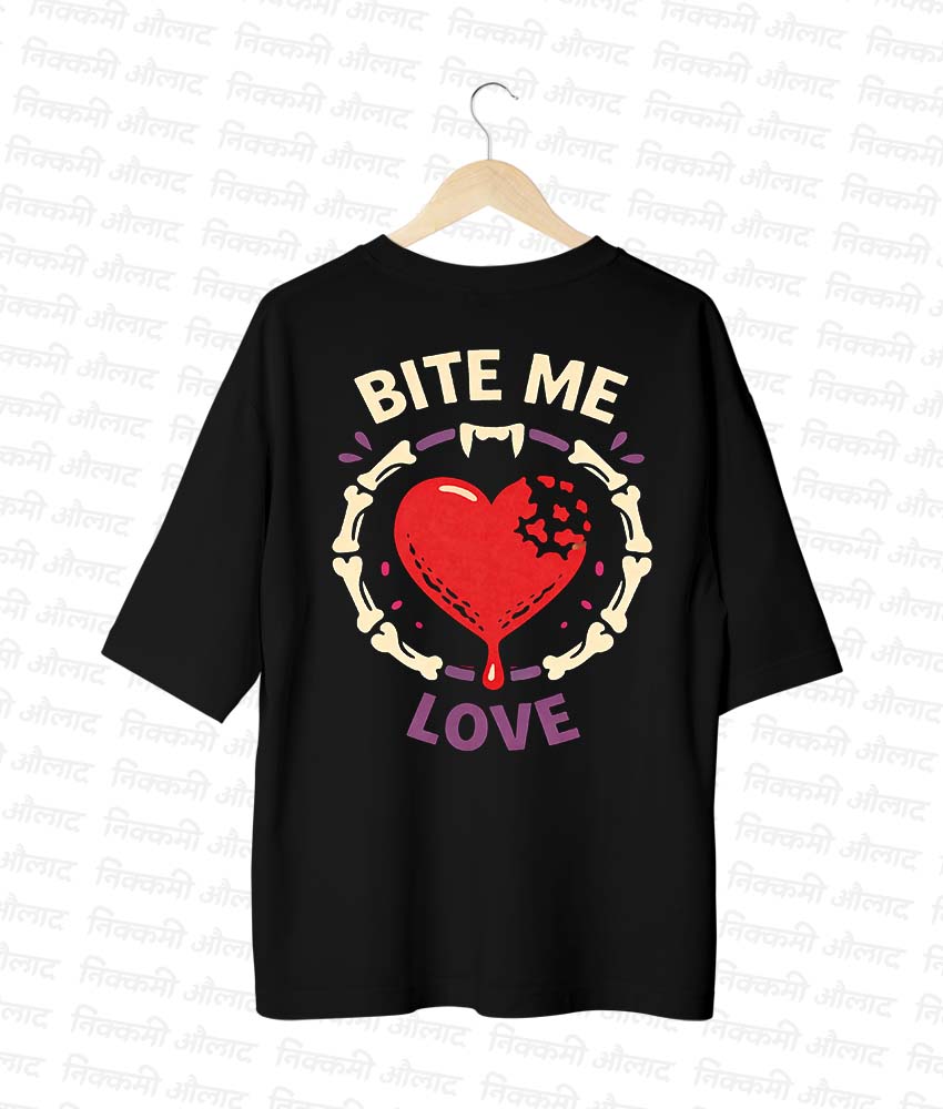 Bite Me (Toxic Love) – Anti-Valentine Graphic Oversized T-Shirt